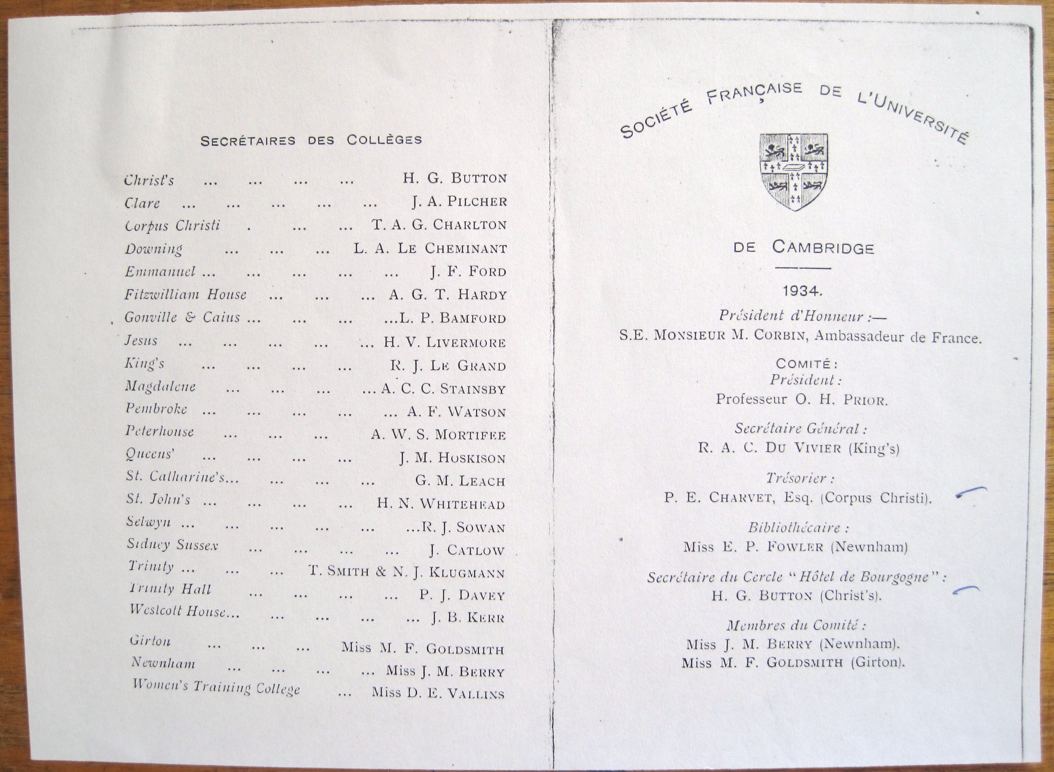 Société Francaise Programme 1934 Published June 26, 2014 at 3456 × 2533 in The Henry Button Archive: 1932-2004 ← Previous Next → Committee register of La Société Française de l’Université de Cambridge in 1934 Like Loading...